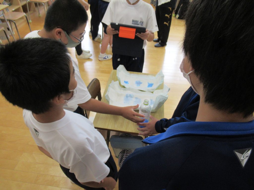☝かしわ荘紹介の様子              ☝オムツの当て方講習の様子