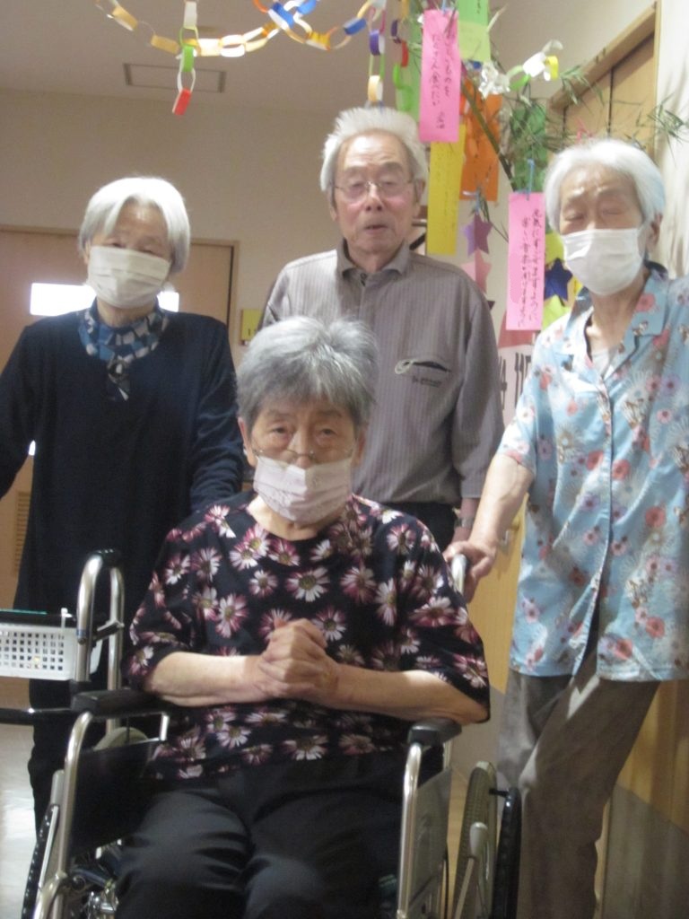 7月7日は七夕です。なごみ荘ショートステイ、特養でもご利用者の皆さんから短冊に願い事を書いて頂き笹につるしました。
