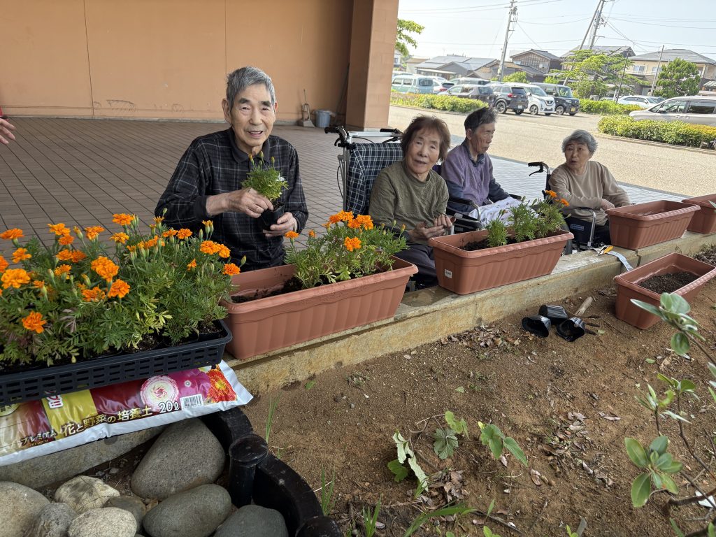 なごみ荘でも、夏にご利用者と一緒にマリーゴールドを植えました。可愛い花がたくさん咲いてほしくて、みんなで肥料をあげていたら、肥料のあげすぎで、枯れ始めてしまいました。その後、アドバイスをいただき、苗も少し足しながら、なんとか復活!小さな花をつけました。